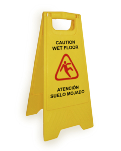 Indispensable para prevenir caídas o accidentes. La señal de suelo mojado es un básico en cualquier espacio sanitario.
